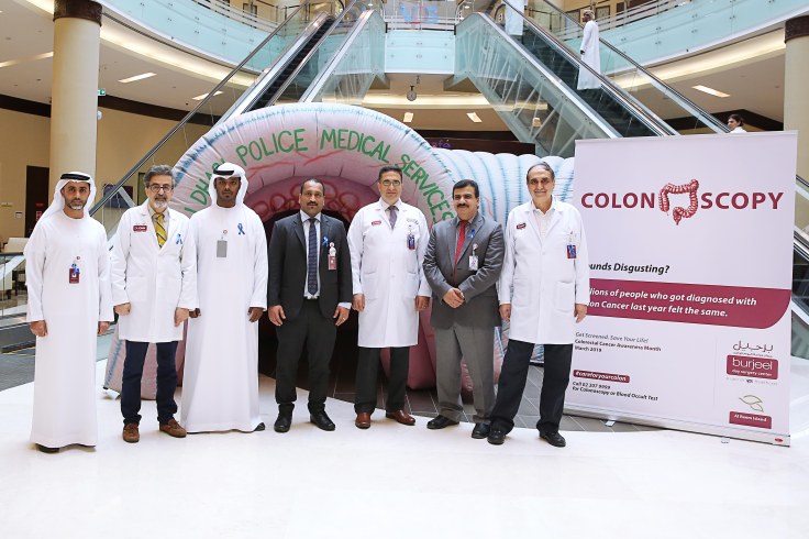 فلقد أطلق مركز برجيل لجراحة اليوم الواحد- جزيرة الريم، حملة توعية بسرطان القولون وسرطان المستقيم، بالتعاون مع الخدمات الطبية في شرطة أبوظبي. وقال السيد سعيد الجنيبي، رئيس قسم التثقيف في الخدمات الطبية في شرطة أبوظبي، وإلى جانبه السيد مؤيد الفقهاء، من الخدمات الطبية في شرطة أبوظبي:
