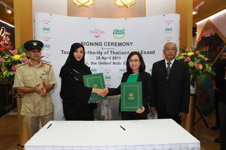 تم توقيع مذكرة التفاهم التي جمعت هيئة السياحة التايلندية في دبي والشرق الأوسط مع لجنة “إسعاد” بجناح تايلاند خلال فعاليات اليوم الأول من معرض سوق السفر العربي 2019، وبحضور كل من السيدة منى محمد عبد الله العامري، رئيس لجنة بطاقة “إسعاد” في شرطة دبي، والسيدة سوبراني بونجبات، المدير التنفيذي لهيئة السياحة التايلندية في أوروبا وأفريقيا ومنطقة الشرق الأوسط.