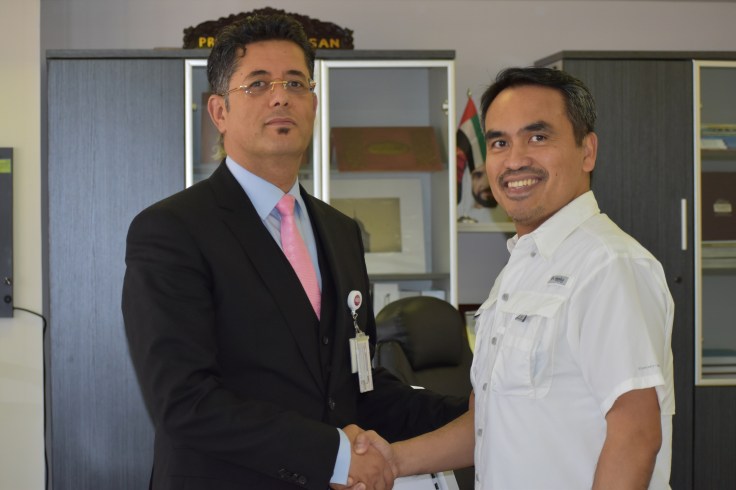 في الصورة (من اليسار): الدكتور البروفسور إياد حسن والسيد في أم، المريض الرقم 1000 الذي أجريت له جراحة الغدة الدرقية.