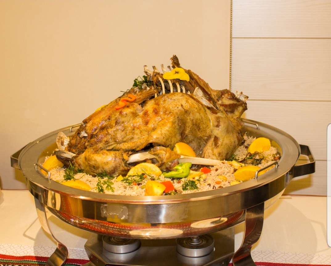 والنجم الرئيسي الحاضر هو طبق ” الأزوي باللحمة”، حيث يمكن للضيوف تذوق لحم الخروف الذائب والمازة الساخنة التي تتميز بالكبة الممزوجة بلحمة الضأن المحضرة بعناية واتقان وفطائر السبانخ والجبن السمبوسك. يشمل الطبق الرئيسي أيضاً مزيج من الشواء العربي الشهي مثل كفتة لحم خروف، شيش طاووق، كفتة دجاج، لحم الخروف، أرز بالشعيرية، طاجين مغربي تقليدي (دجاج / خروف / سمك)، جريش، مكبوس، تشكيلة خضار، دجاج ماندي، دجاج ملاكيا وشيش براك. أنهِ بحق العشاء الفخم الذي يوفر اضافة لذلك أفضل أنواع الحلويات العربية.