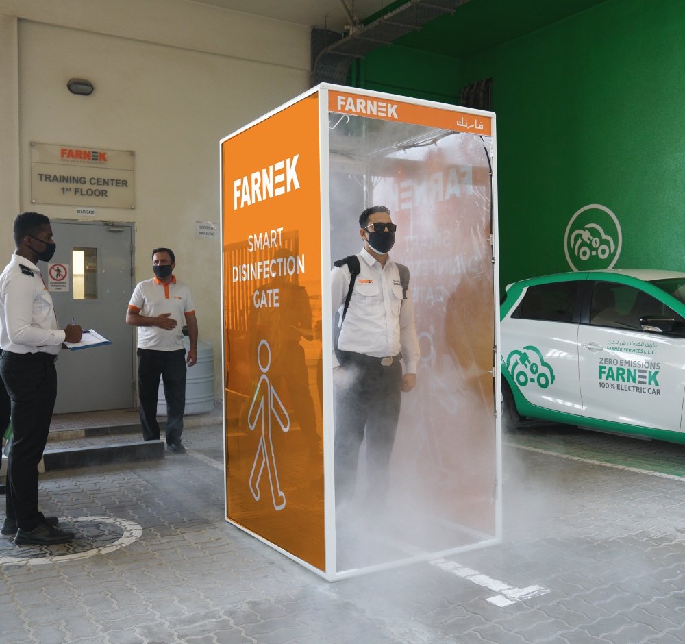 ستصبح فارنك أول شركة في مجال إدارة المرافق تركب بوابة تعقيم متطورة باستخدام مواد آمنة غير ضارة وصديقة للبيئة بما يتماشى مع المعايير التي حددتها بلدية دبي
