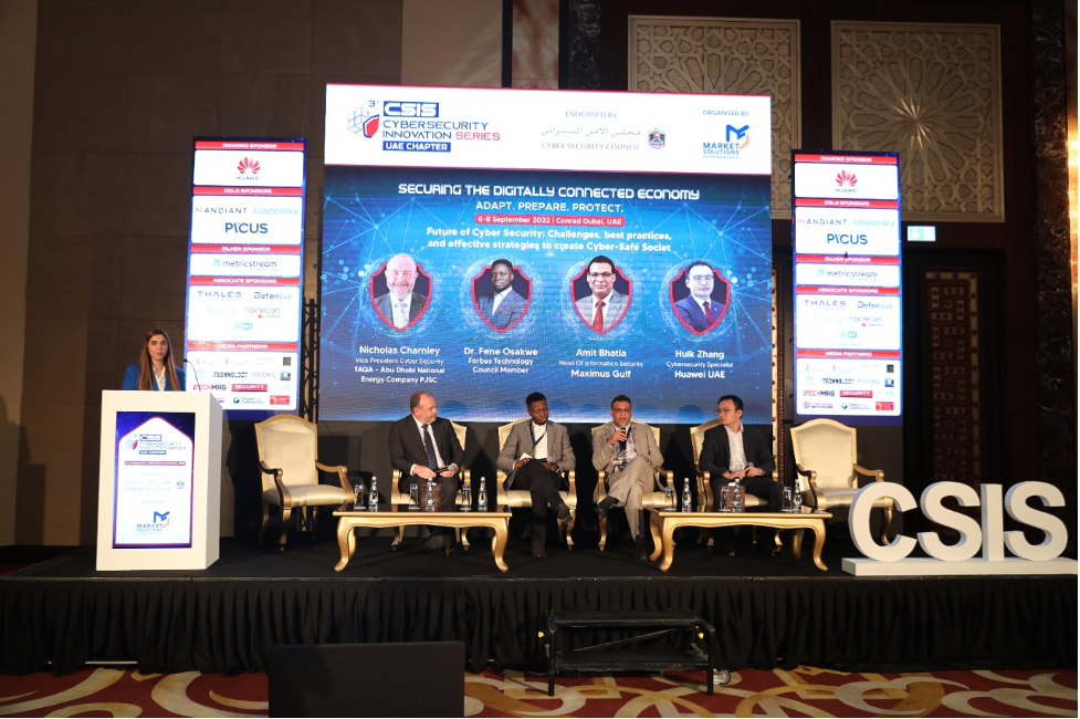 ويشارك في المنتدى سعادة الدكتور محمد حمد الكويتي، رئيس الأمن السيبراني، وسلطان العويس رئيس الشؤون الرقمية بوزارة شؤون مجلس الوزراء، وأوليسيوس تشيانغ، كبير مسؤولي الأمن السيبراني في هواوي بدولة الإمارات، وجاكوب ماثيو، رئيس قسم تقنية المعلومات بحكومة أبوظبي، وعدد من أبرز خبراء الأمن السيبراني وتكنولوجيا المعلومات في المنطقة.