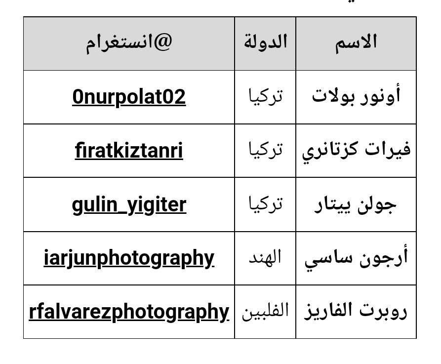 قائمة الفائزين بمسابقة شهر يوليو شَهِدَت ثلاثية إندونيسية من خلال المصورين “الفن هاديويبوو واتوبونجو” و”وايو بردانا” و”براستوو عبدالرحمن”، بجانب المصور العُمانيّ “سالم بن صباح بن حمد الوهيبي”، والباكستانيّ “سليمان شوكت”. نسخة شهر أغسطس من المسابقة أعلنت حضوراً تركياً مفاجئاً بثلاثية مميزة من خلال المصورين “أونور بولات” و”فيرات كزتانري” والمصورة “جولن ييتار” بجانب المصور الهنديّ “أرجون ساسي” والفلبينيّ “روبرت الفاريز”.