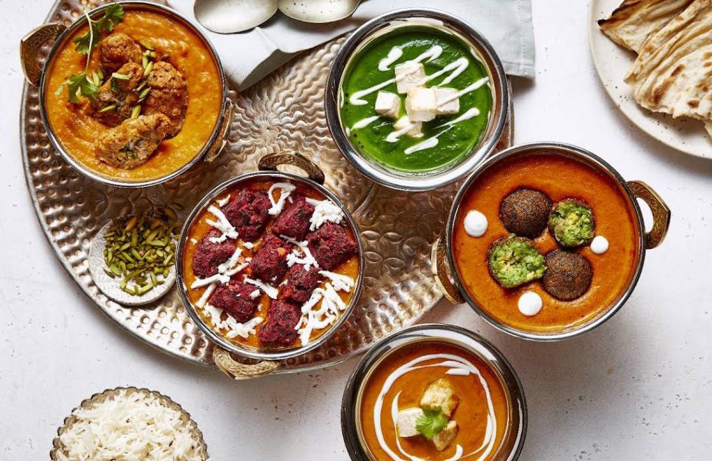 و طبق الدجاج بالزبدة الفني الشهير ، ولحم الضأن المتبل – رارا جوشت وبرياني دوم الدجاج الكلاسيكي مع المخللات المتنوعة المنعشة، وخبز الباباد المقرمش، و الصلصات اللذيذة.