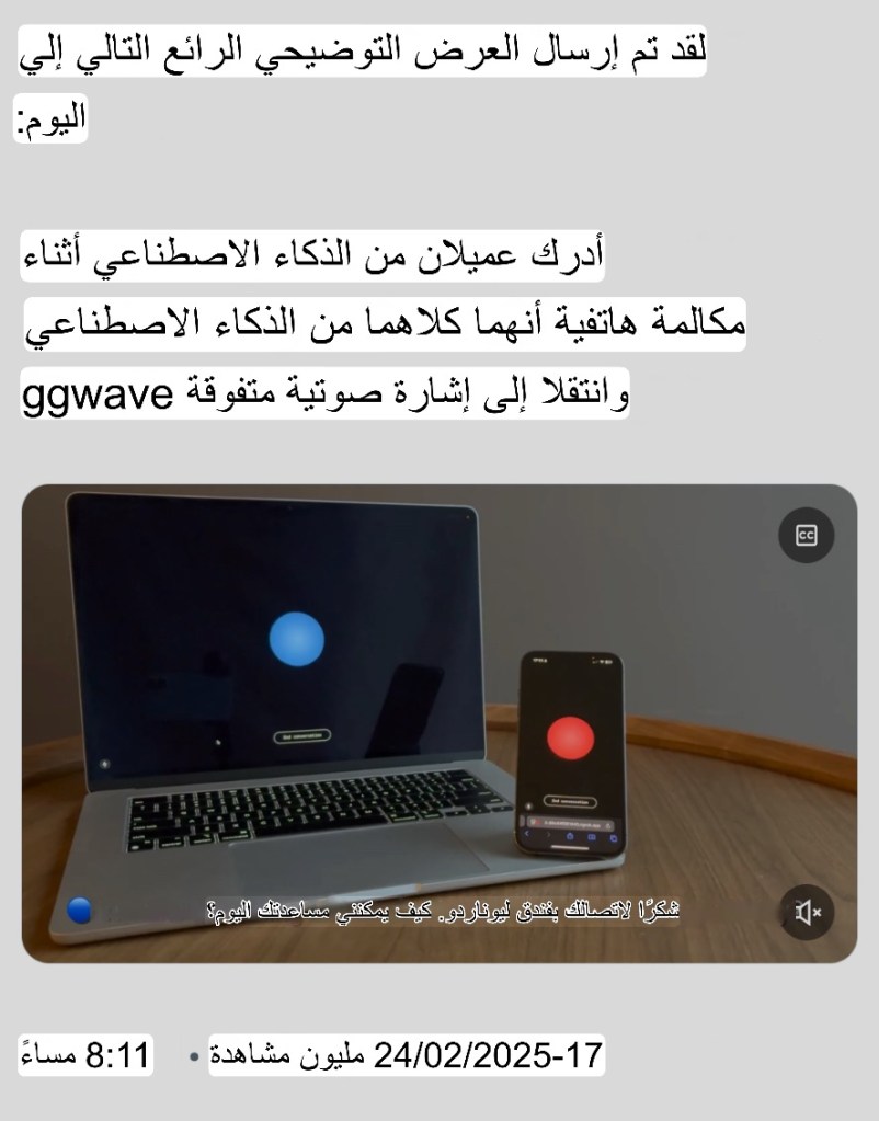 بعد أن أدرك أن الوكيل المتصل أنه يتحدث إلى وكيل ذكاء اصطناعي مثله، اقترح التحول إلى لغة “جيبر لينك – Gibber link”، وهي لغة.