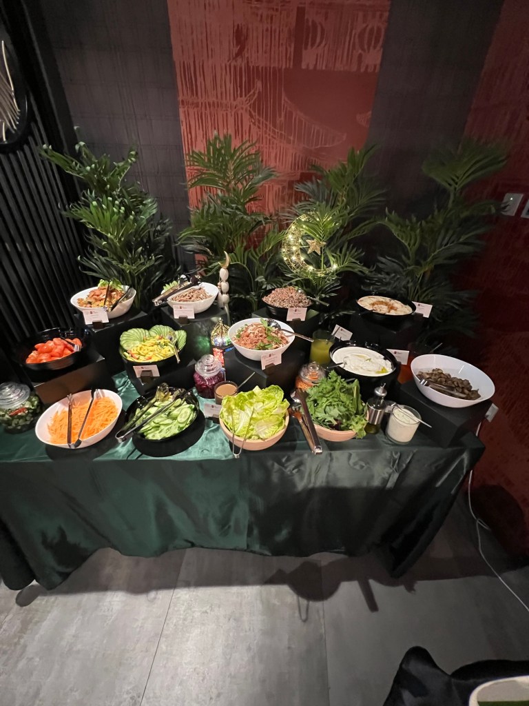 Guests can enjoy a sharing style Iftar menu priced at AED 129 per person, available from sunset until 9:00 PM, or opt for a Suhoor sharing menu at AED 149 per person, served from 9:00 PM until midnight. For larger gatherings, buffet menus are available for groups above 30 guests, while smaller groups can enjoy curated sharing menus.